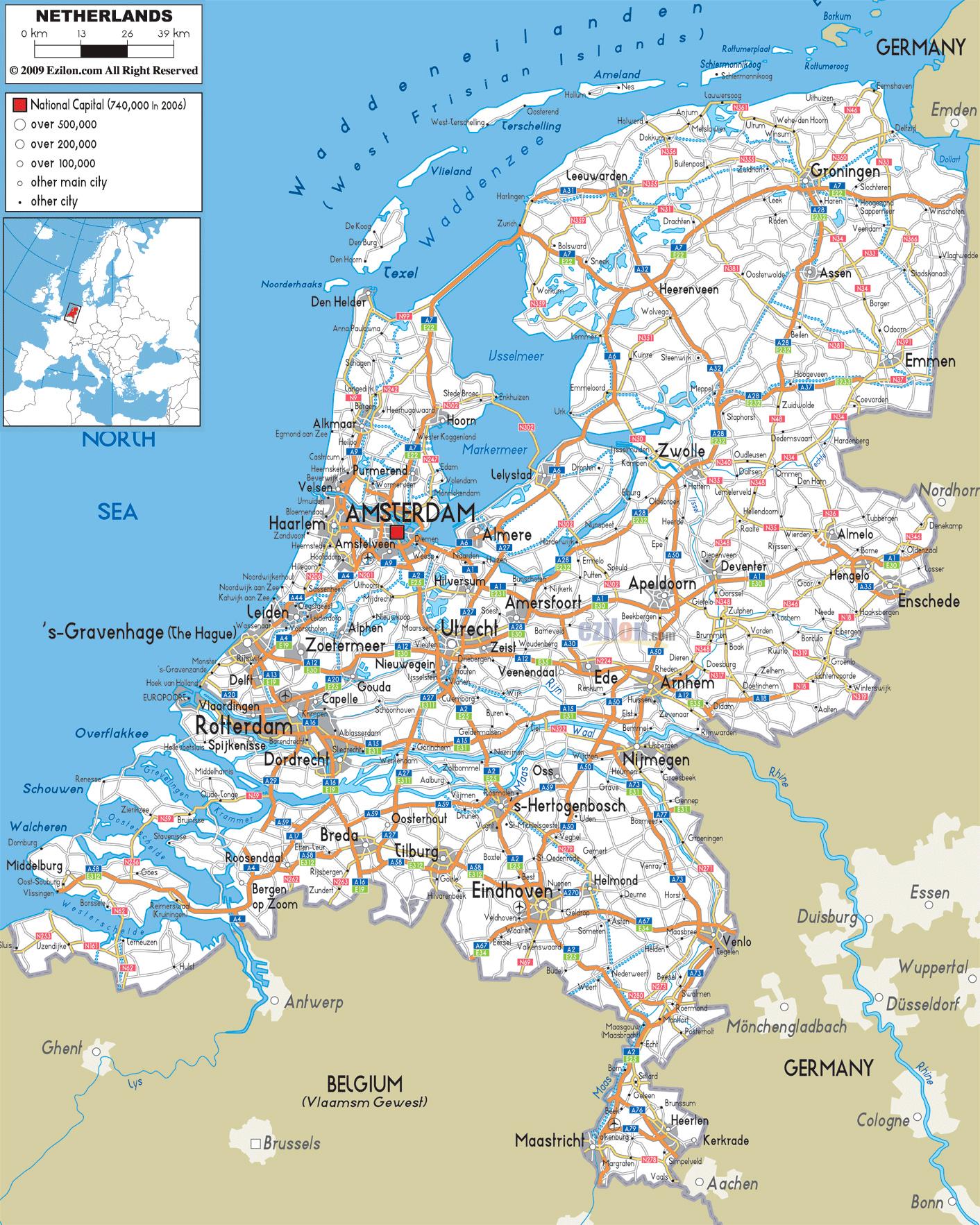 Road map of Netherlands. Netherlands road map (Western Europe - Europe) to print. Netherlands road map (Western Europe - Europe) to download.
